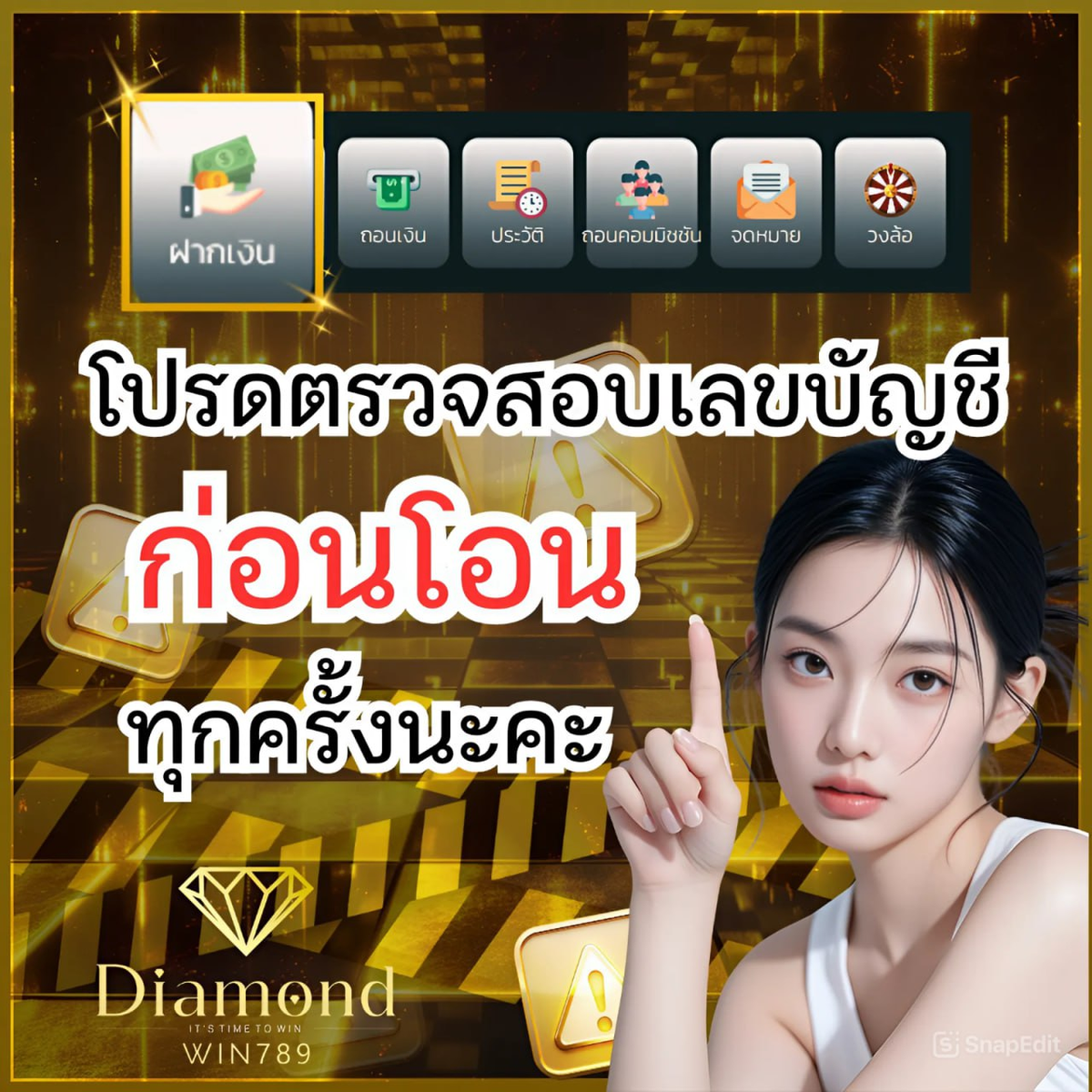 ลูกค้าต้องใช้บัญชีที่ทำการลงทะเบียนไว้เท่านั้นในการฝากเงิน